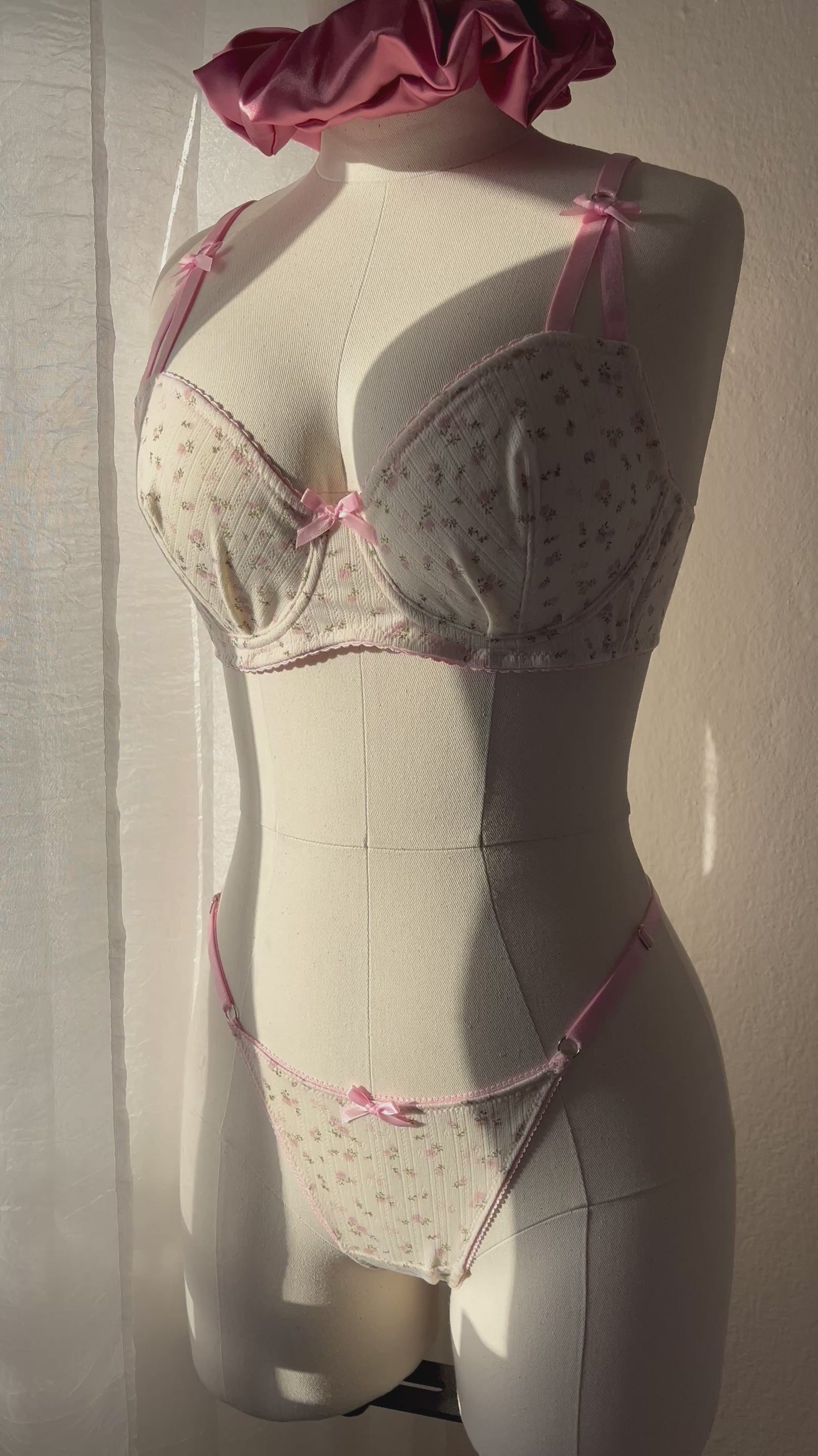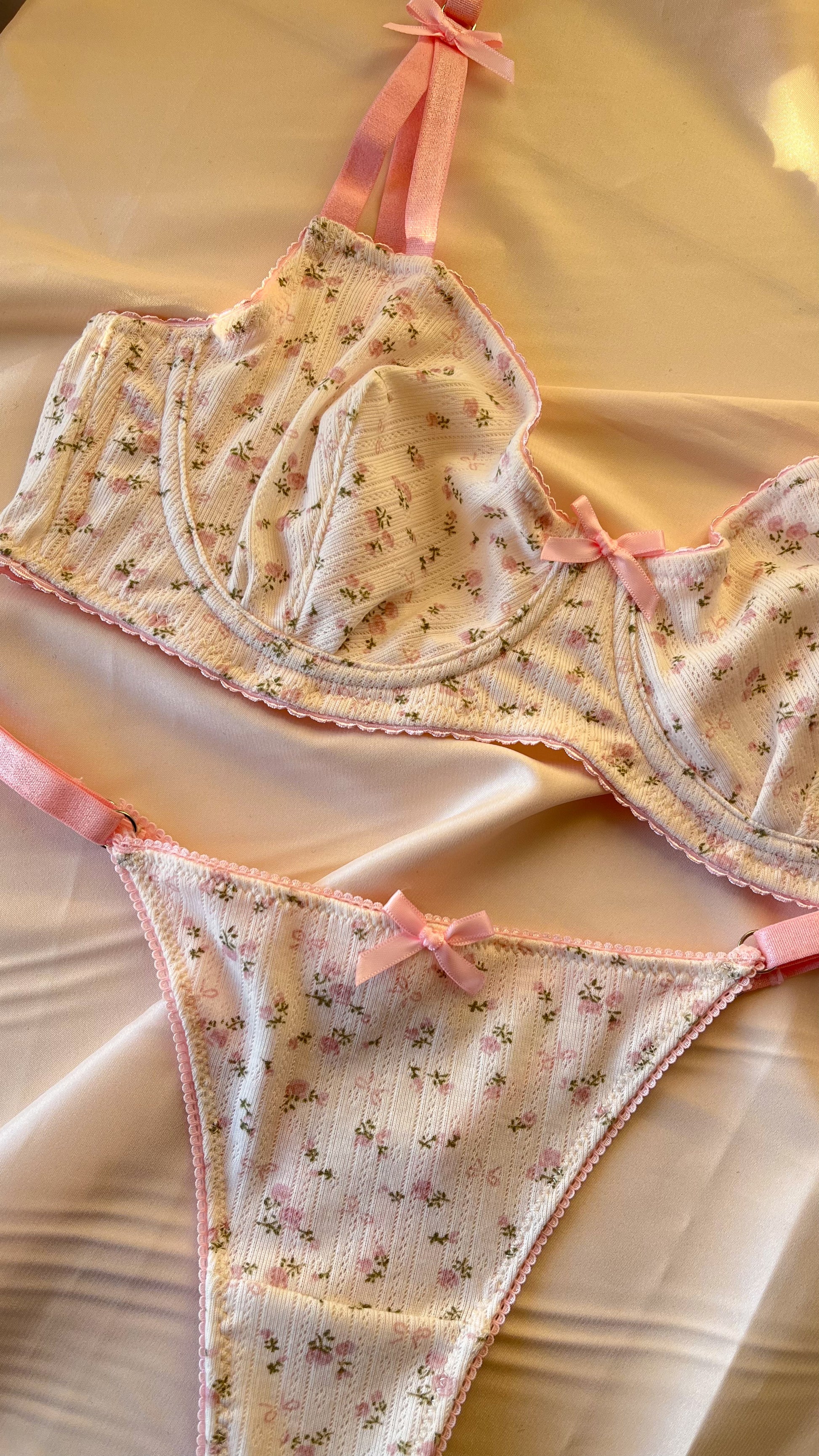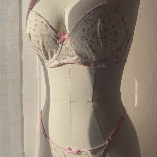 Romantismo é a palavra que define este conjunto. Conjunto em malha pointelle com padrão floral, algodão com elasticidade bidirecional que garante movimento e conforto sem perder a forma. Com um visual vintage-floral, respirável e feminino.