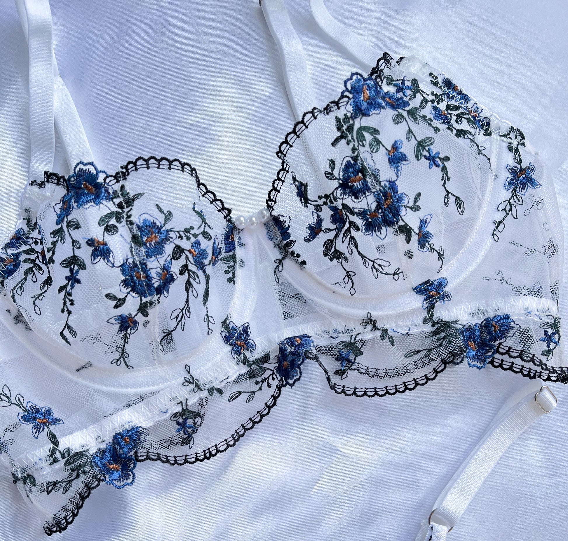 Sutiã delicado e elegante, com renda bordada levemente elástica.